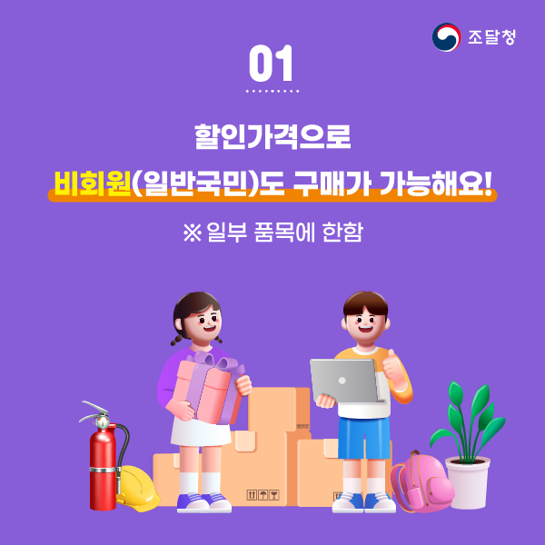 ◆ 쇼핑몰의 특성상 기관과 중소기업을 대상으로 구매할 수 있는 곳이라 일반국민들은 쇼핑몰의 일부품목에 대해서만 구매가 가능합니다.