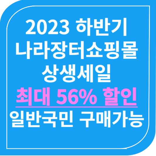 올해부터는 조달청에서 운영하는 나라장터 쇼핑몰에서 기관 또는 중소기업에서 구매할 수 있는 제품을 비회원(일반국민)도 최대 56% 할인된 가격으로 구매가능하다고 합니다. 2023년 상반기에도 진행된 이벤트를 하반기에도 진행하는데요,