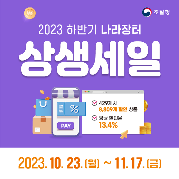 "2023년 하반기 나라장터쇼핑몰 상생세일" 구매방법에 대해 알려드리겠습니다. 따라오시죠!