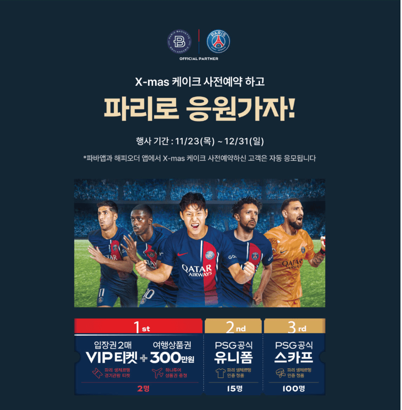 | 파바앱 | <X-mas 케이크 최대 30% 혜택> 1. 대표케이크 2종 선착순 20% 혜택 + 통신사 10% 혜택 2. 10% 혜택 + 통신사 10% 혜택 3. 현대 M포인트 50% 사용 혜택 3. 경품 추첨 EVENT 자동응모 ※ 매일 오전 0시(자정)부터 오후 10시 30분까지 예약 가능 |
